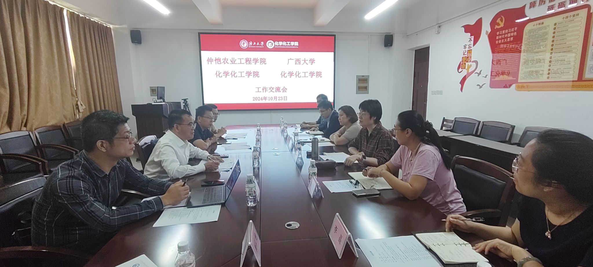 为进一步提升BV伟德官方网站学位点建设水平,提高研究生培养质量,提升学院实验室建设能力,2024年10月22日至23日,BV伟德官方网站赴广西民族大学、广西大学开展调研,院长舒绪刚 、副院长程杏安、实验室主任杨富杰、应化系教工党支部书记李侨光、研究生秘书杨红艳等参加调研。