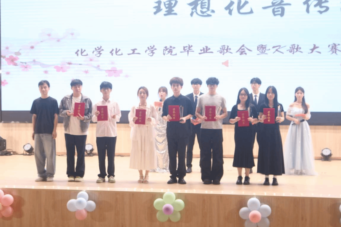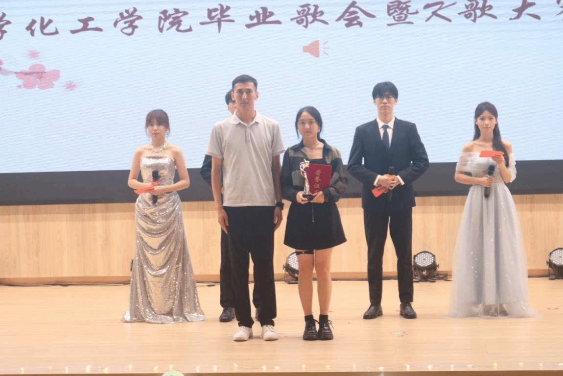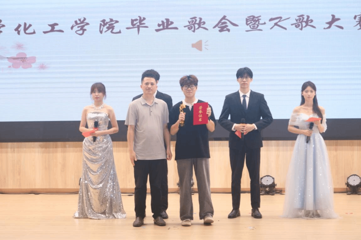 获得十佳歌手称号的有种科 211 祝浩航、食品国际 241 刘柯妍、国贸 241 洪东骏、工管 231 薛泽振、园林 231 陈畅航、人力 241 曾雅琦、商英 231 黄祖怡以上七位同学,黄铎为以上同学颁奖;获得化工院音乐之星的是化工 241 的杜蕊莹,获得化工院优秀歌手的是化工 231 杨业成和材化 241 林浩彭,许义锋为以上三位同学颁奖。