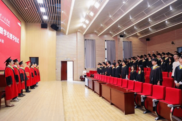 仪式在雄壮的国歌声中拉开帷幕。邱树华宣读《BV伟德官方网站学位评定委员会授予学位的决议》。舒绪刚为毕业生逐一拨穗正冠、颁发学位证书。