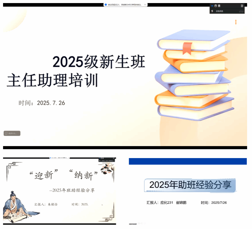 本报讯(BV伟德官方网站 洪志丹)为全面提升新生班主任助理履职能力,保障2025级迎新工作高效开展,BV伟德官方网站于7月26日线上召开新生助班专题培训,培训由辅导员助理洪志丹主持,辅导员李珊珊老师、往届优秀班主任助理代表朱铭怡、崔锦鹏及全体新生班主任助理参加。