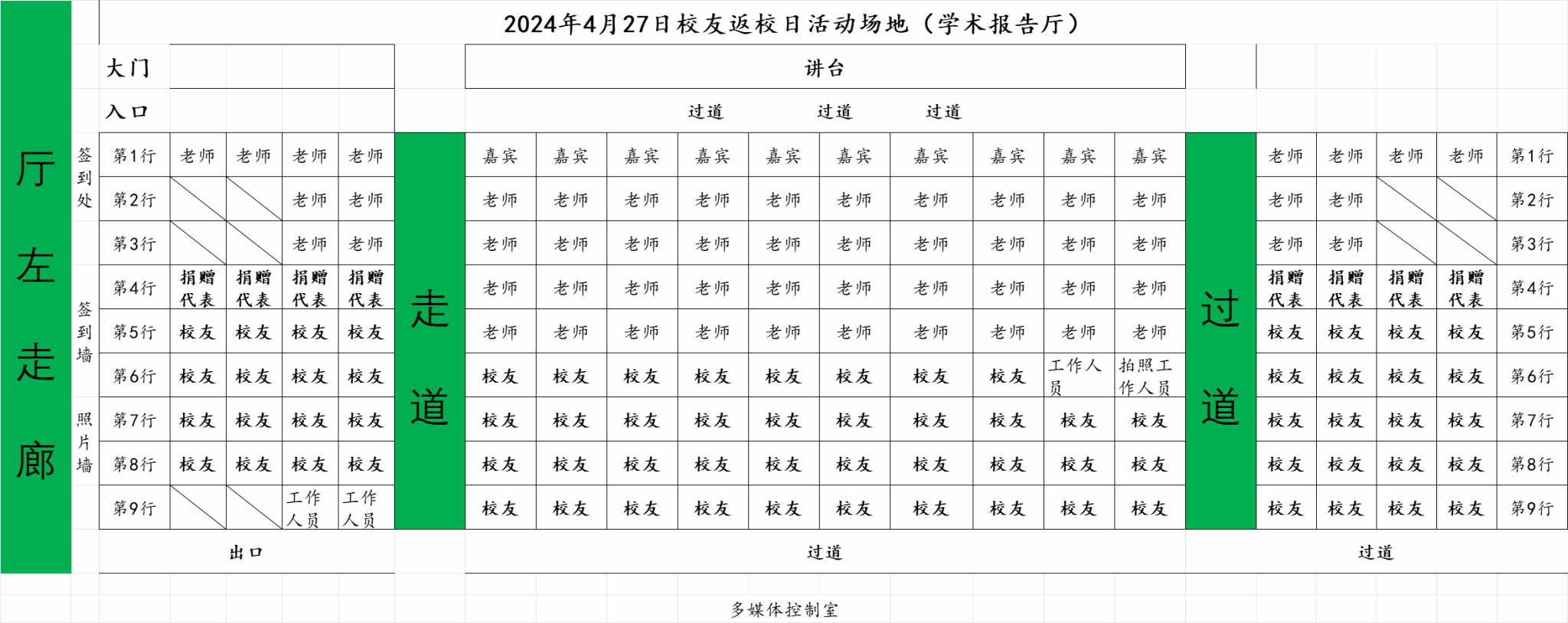 后续其他时间 | 教学楼①六楼全部、401、402教室(已借出)或者其他场地(校友班会课室预约链接) | 校友班级师生聚会活动 | 班干部或班主任按班级意愿组织更多座谈分场或者其他类型聚会活动 |