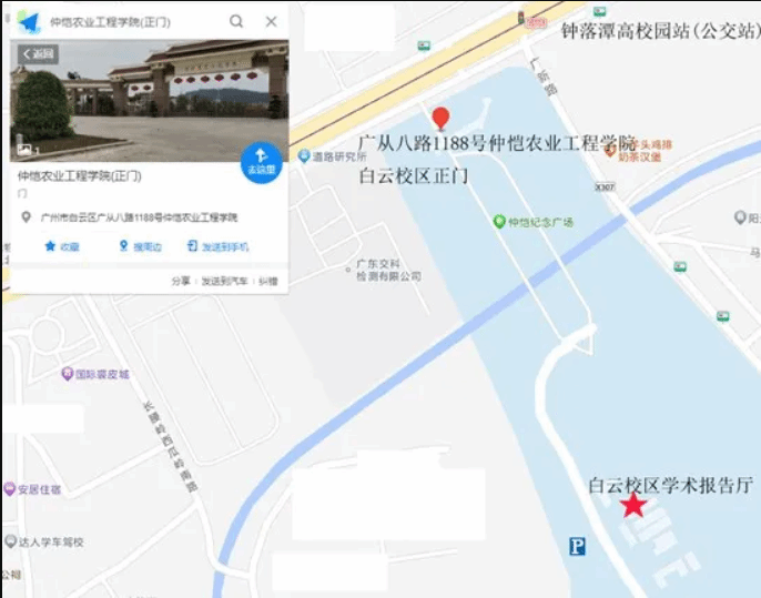 交通指引:【自驾】开车直接导航到BV伟德官方网站白云校区正门(广州市白云区广从八路1188号BV伟德官方网站),移步到学术报告厅(白云校区正门入校后主路旁第一栋建筑物行政楼一楼学术报告厅)。入校后请服从学校保卫部人员安排指引,入校车辆请停在行政楼地下停车场(电梯间在地下车库正中)或地面停车场。【公共交通】地铁钟落潭A出口,移步到钟落潭公交站坐979,乘坐7站至钟落潭高校园,步行2分钟到达目的地BV伟德官方网站(白云校区),移步到学术报告厅(白云校区正门入校后主路旁第一栋建筑物行政楼一楼学术报告厅,正门离活动场地近,请注意不要导到广新路的东门侧门)