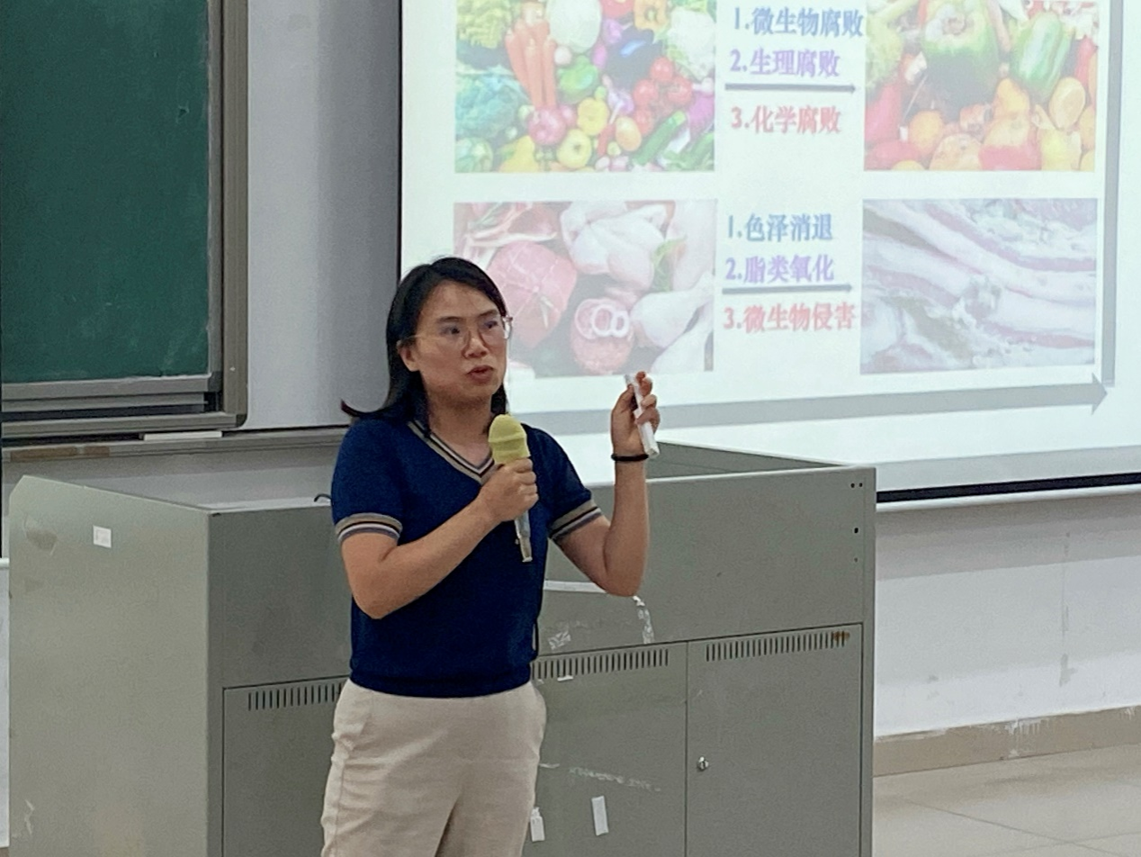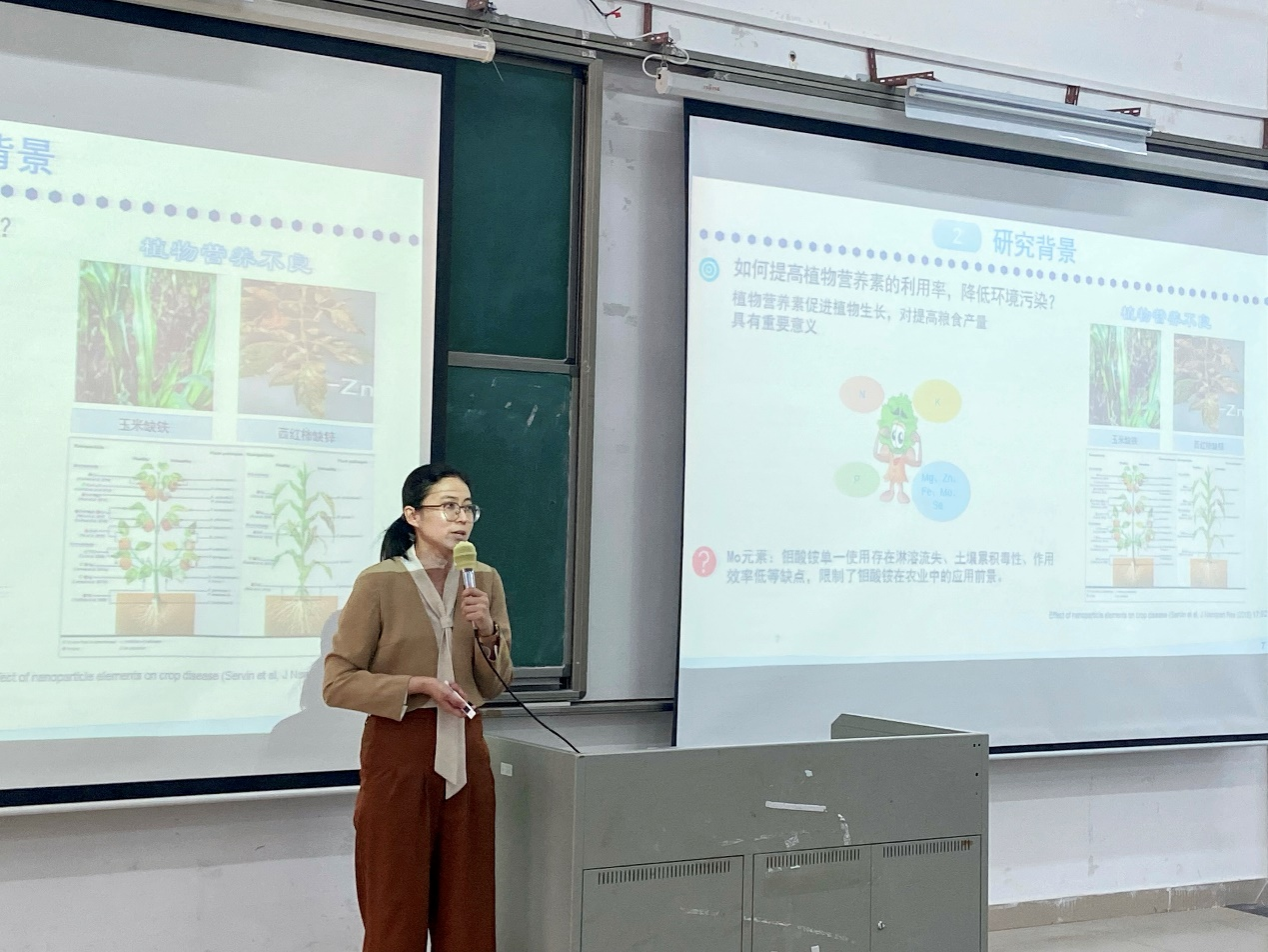 郝丽副教授报告题目为《氮化硼纳米片缓释体系构建及其性能研究》、廖松义特聘副教授报告题目为《新型二维MXene及其复合电极材料的合成与电化学性能研究》、曾黎燕特聘副教授报告题目为《功能性食品保鲜剂的设计、合成及其应用》。三位老师分别从各自研究课题的研究背景与意义、研究内容与进展及重要研究成果等方面做了精彩分享,并与现场师生进行深入了交流和探讨。