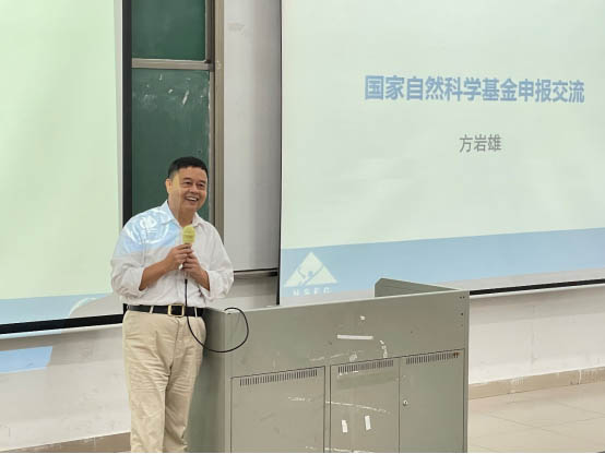 方岩雄教授以《如何开展研究与国基项目申报》为题进行分享交流。方教授从评审专家的角度详细分享了撰写国家自然科学基金项目申报书有关项目名称、科学问题属性、中文摘要、立项依据与研究内容、研究基础与工作条件这五方面的注意事项和经验。方教授建议申请人在填报时应全面深入了解国内外相关领域的最新研究动态,在一定前期工作的基础上,总结凝练出自身研究的创新点。