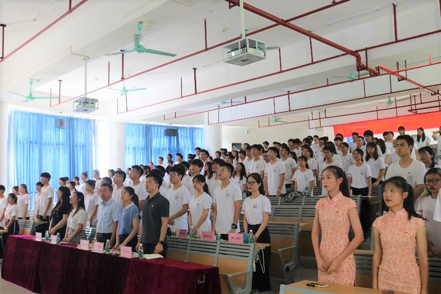 仪式在庄严团歌中拉开帷幕。在介绍青马班的历史后,由邱树华书记进行第二期“青马工程”授旗授书仪式。