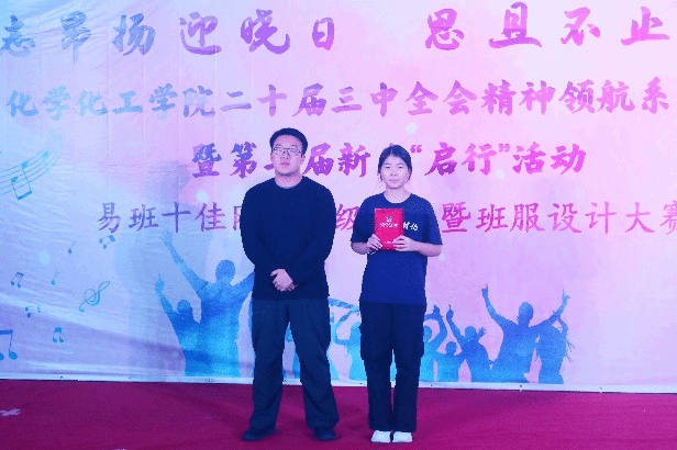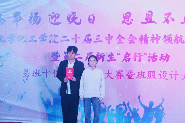 随后,各班解说员通过PPT详细阐述了班级易班建设成果及班服设计理念。化学工程与工艺241班的班服设计寄托了他们对未来的美好憧憬和对专业的深厚热爱;应用化学241班以锥形瓶为设计核心,彰显了对化学学科的执着追求;应用化学242班则将班级口号融入设计,表达了将智慧转化为力量,共创未来的坚定信念;材料化学241班班服背面的青竹设计,象征着坚韧不拔、积极向上的精神风貌;高分子材料与工程241班的班服设计则巧妙融合了化学学科的趣味性,激发了同学们的无限创意。