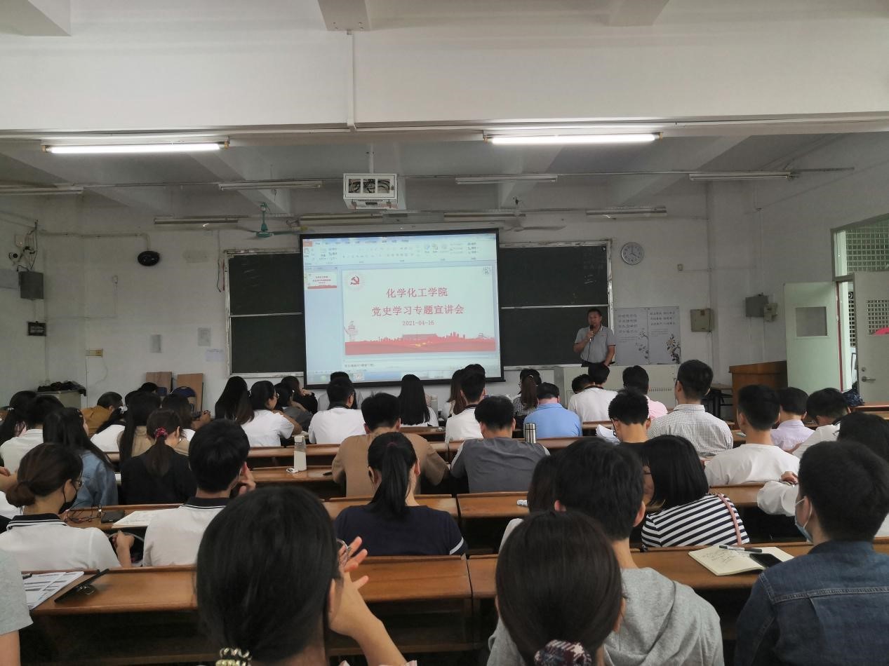为深入学习贯彻落实习近平总书记在党史学习教育动员大会上的重要讲话精神,严格落实在全党开展党史学习教育,4月16日下午,BV伟德官方网站党总支邀请学校党委委员、党史专家唐明勇,在海珠校区教学楼B601课室开展了党史学习教育专题宣讲会。宣讲会由学院党总支书记邱树华主持,全院师生党员参加了本次宣讲会。