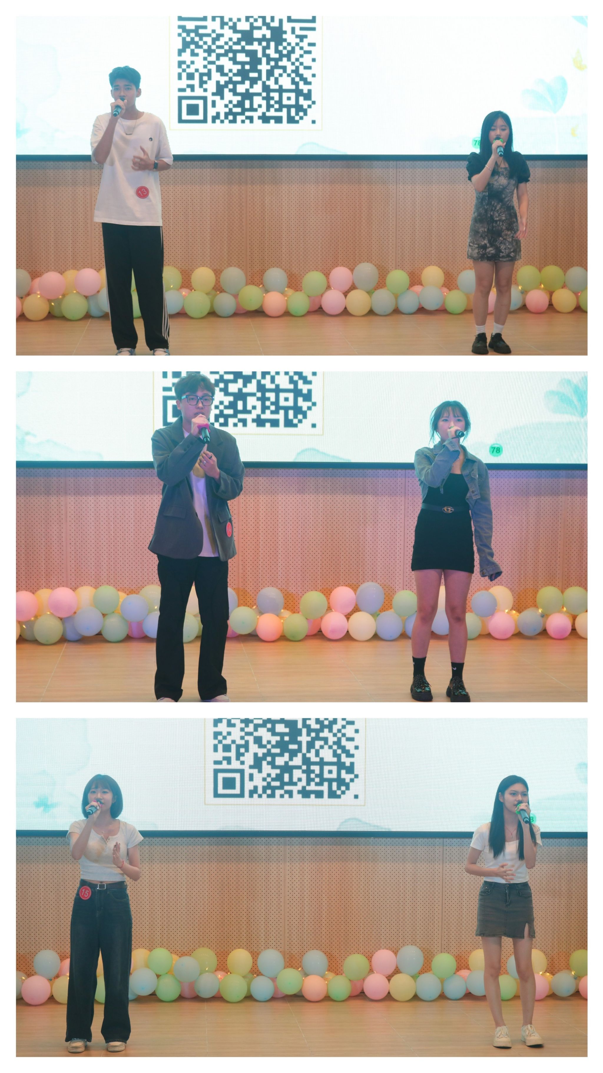 由中草药221陈锦豪和会展223谢洁瑶组合带来的歌曲《那又怎样》,两人合唱的声音使每个音符都充满了真挚的情感和无尽的魅力。自动化214陈荣增和市营221梁海英演唱的歌曲《命运》,唱出了生命存在的意义。环工212彭丹祺和商英213苏倩妮带来的歌曲《年》,使现场观众感受到了岁月的流转和韵味。