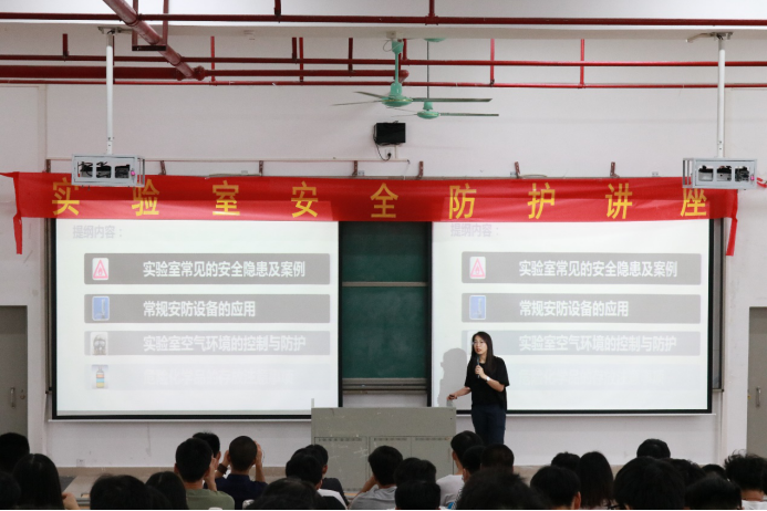 5月23日上午,由伟德官网承办,由广州贝特生物科技有限公司禹菡冰工程师主讲的实验室安全防护讲座在D2小礼堂举行。