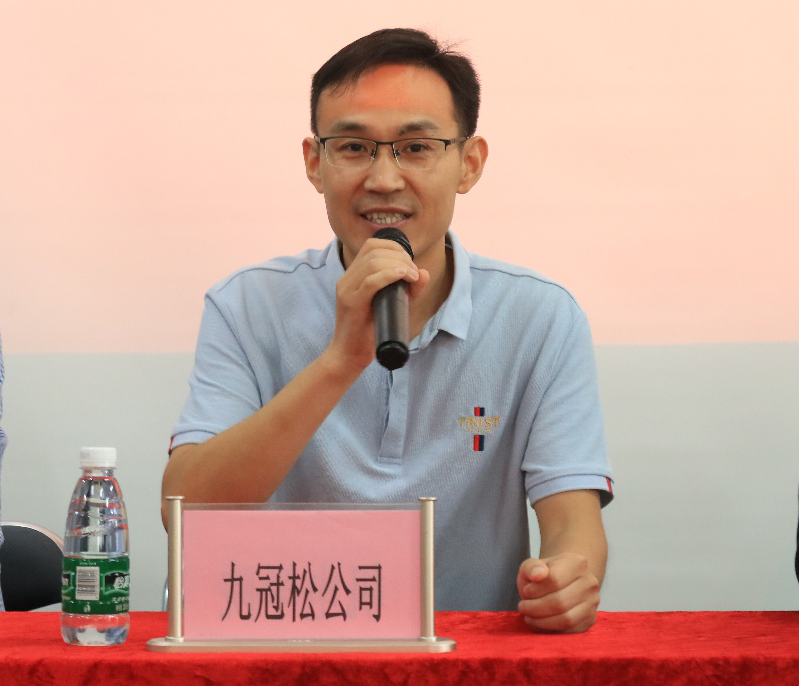 第五项议程是由王伟松总经理发表讲话。王总对学生提出了3点希望:第一,希望学生拥抱时代、感恩祖国。他认为无论同学们的生活条件是否优越,同学们都拥有着广阔的机遇空间,同学们作为青少年的一份子更应该以积极的心态去拥抱时代、感恩祖国。第二,希望学生科技创新、实业兴国。作为一名理工科大学生更应该要发挥自身专业特长去建功立业,适应时代创新的要求。第三,希望学生成就梦想,燃烧激情。世界的明天属于当代青年,未来的成就也要看新一代的表现,希望同学们能不负韶华,以梦为马,共创美好未来。