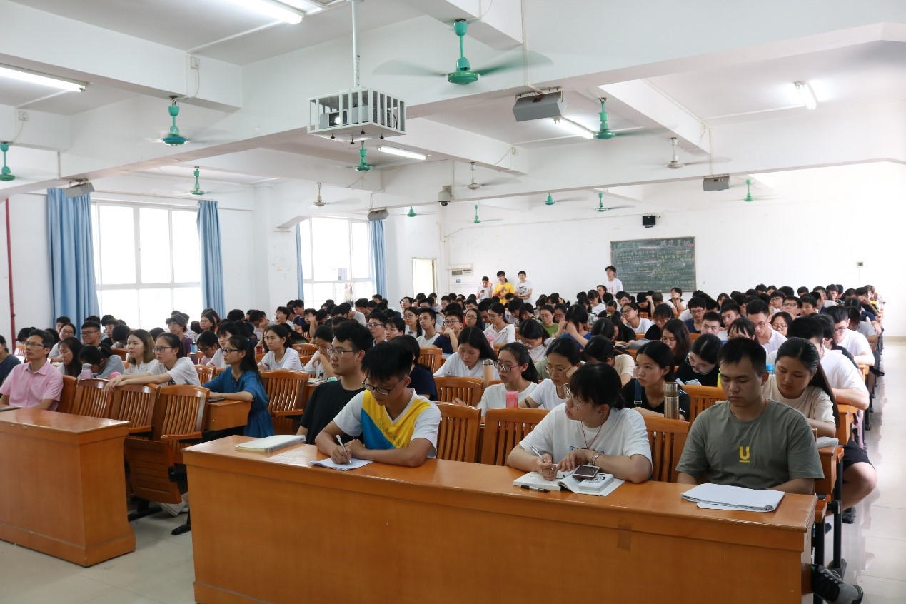讲座开始,教室里座无虚席。在同学们的热烈欢迎下吴旭老师首先进行简单自我介绍。接着,他向同学们介绍了金属材料、无机非金属材料、高分子材料这三大材料,随后他通过荷叶上的水珠、鳄鱼的表皮以及蜥蜴的表皮的例子向同学们介绍了超亲水以及超疏水的涂层,并通过观看实验视频的方式,让在座同学们了解涂层的优缺点。